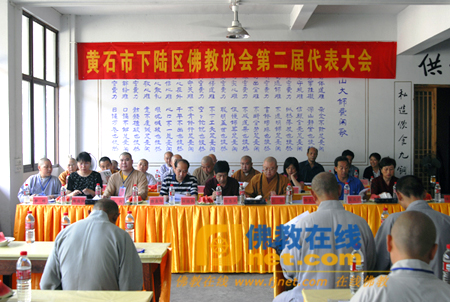 会议由参修法师主持。演慧法师在会上致开幕词;黄石市佛协会长正慈法师代表市佛协在会上致贺词;下陆区统战部部长闵远良代表下陆区区委、区政府和区政协在会上作了讲话,并在讲话中向与会代表提出了三点要求和希望:一是要有政治意识,紧跟党走,爱国爱教;二是要有法律意识,依法活动,遵纪守法;三是要有社会意识,维护稳定,多做贡献。