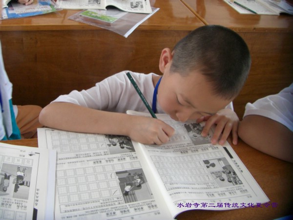 营员们在上硬笔书法课