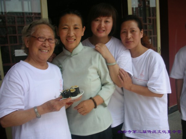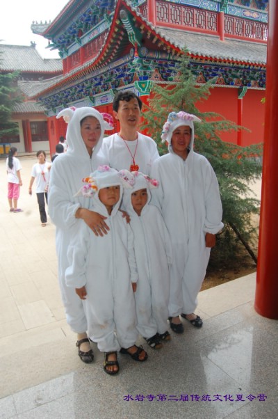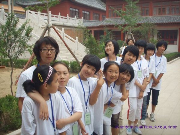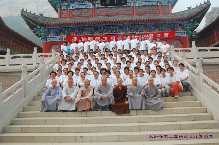 水岩寺法师和夏令营老师家长们合影