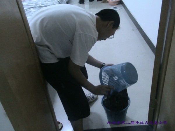 趁小营员们上课去了,辅导员哥哥在打扫房间.