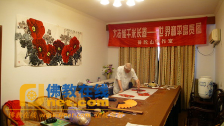 著名牡丹画家崔廷玉为普陀山制作世界和平富贵图