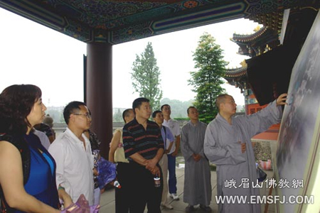 2009年7月30日,四川省财政厅机关党委副书记毛谦武带领省财政厅及北川县财政局部份工作人员共40余人到峨眉山大佛禅院参观。受峨眉山佛教协会会长永寿法师委托,大佛禅院监院常性法师、知客昌林法师等热情接待了参访团一行,并陪同他们参观了寺院各处殿堂。