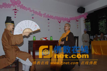 照心法师为学员頒发了毕业证后,文娱活动开始。学员们表演了合唱,手语,诗朗诵,莲花灯舞,和精彩的小品。学员们自编、自导、自制的滑稽服装道具,及精彩的表演内容——苏东坡与佛印禅师的故事赢得与会大众的阵阵掌声。