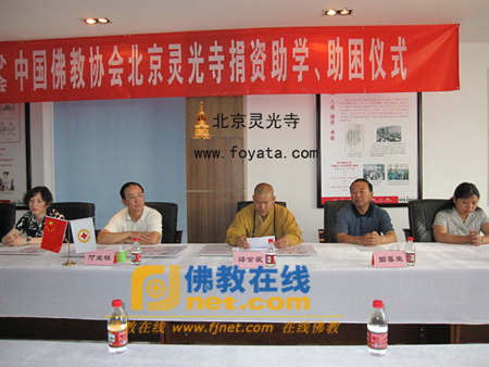 2009年7月29日上午9点30分,“石景山区民宗侨办、红十字会、中国佛教协会北京灵光寺捐资助学、助困仪式”在北京石景山区红十字会举行。