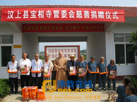 2009年7月31日上午,山东省汶上县宝相寺慧昶法师一行走访看望了汶上县南站镇养老院的老人们,向老人们送去了200套夏天的衣物、大米和食用油等,受到了南站镇政府领导和养老院的老人们的热烈欢迎。