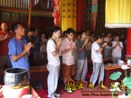 近日,陕西终南山观音禅院举行了第七届佛子夏令营。长安护国道安寺住持宽严法师应邀为夏令营授课。宽严法师以《知恩报恩》为课题进行开示。在场营员无不法喜充满,欢喜受持。
