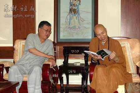 2009年8月11日下午,复旦大学宗教系主任王雷泉教授一行4人到江西省九江东林寺参访,受到东林寺代住持大安法师的热情接待。宾主双方进行了亲切友好的交流。
