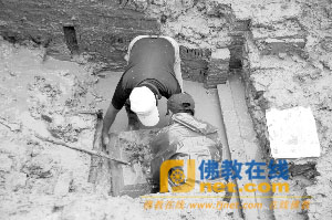 扬州五代墓考古现场现墓主人墓志 上有多幅佛像图案