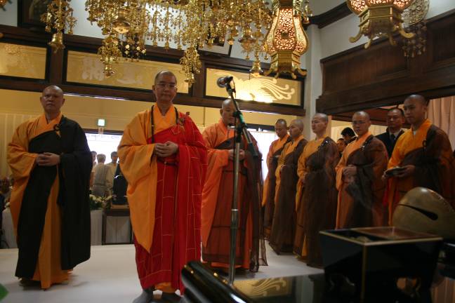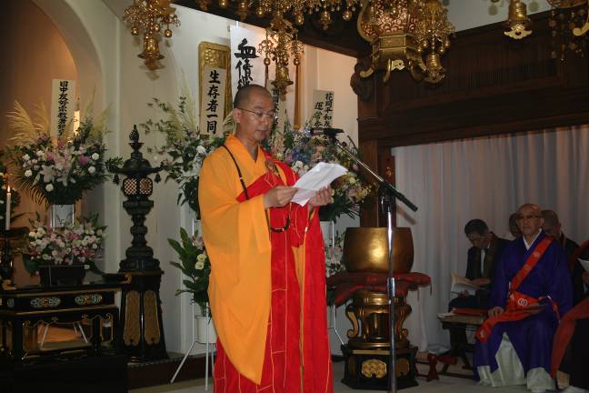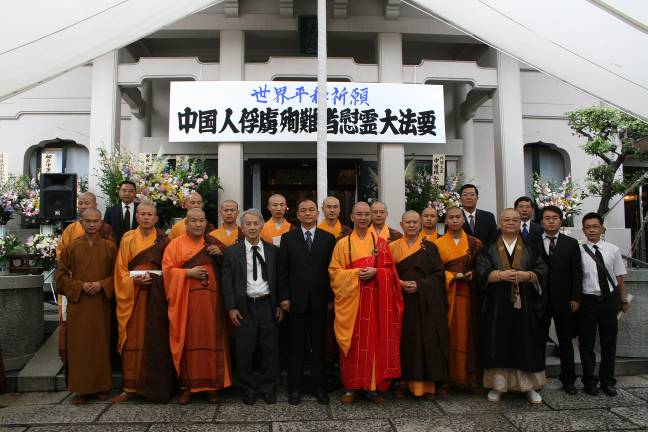 今天,我们抱着缅怀与感恩的心,前来参加在东京本久寺会馆隆重举行的“祈祷世界和平·中国在日殉难劳工慰灵法会”。我们缅怀的是,在六十多年前那场不幸的战争中,失去宝贵生命的中国在日殉难劳工们,以及所有在那场战争中死难的无辜中国人民和日本人民;我们感恩的是,所有为筹办此次法会付出辛劳的日本友人们,以及六十多年来一直为中国在日殉难劳工奔劳的日本佛教界大德和善心人士。这次法会之所以称为隆重,是因为它不仅得到中国佛教界、日本佛教界的积极响应,更得到中国政府、日本政府的高度重视,乃至于受到中国人民和日本人民的悉心关注。这说明,中日两国已站在时代新起点上,以一颗更加坦诚的心面对过去的历史,也为更好地走向未来,迈出了具有重要意义的一步。