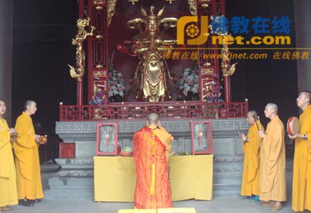 2009年8月17日,浙江省嘉兴市精严讲寺百亩放生池破土动工建设。为此,精严讲寺举行洒净仪式,从祈请韦陀护法菩萨开始,到山门外乞求神明并含识,以此佛教传统仪式纪念精严讲寺在发展过程中的重要事件。