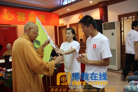 随后,营员代表接过了无相法师手中的营旗,举行了入营宣誓,菩提营正式开营。