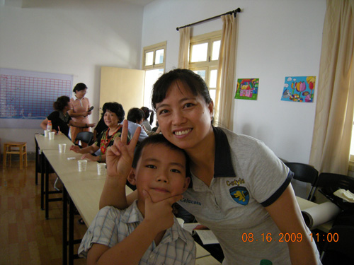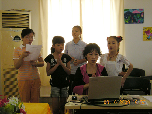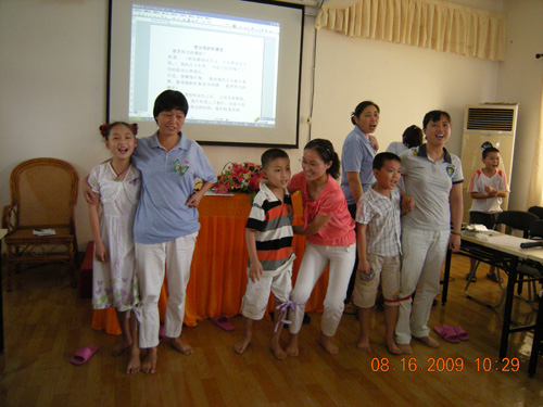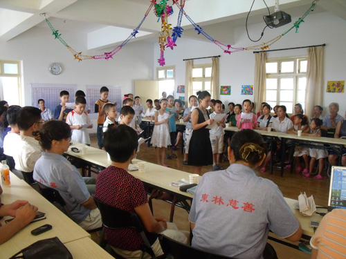接着,小志愿者莹莹给大家演唱了歌曲《让我们荡起双桨》。她的母亲、志愿者宋淼林也向大家表达了她的祝愿。