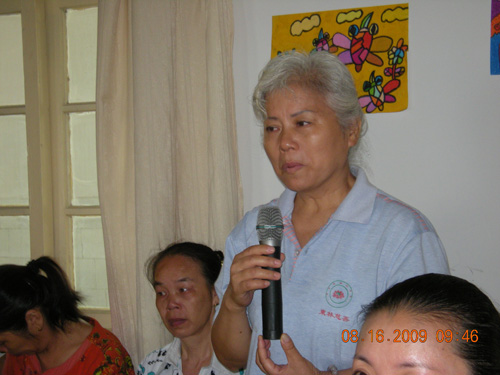 新加入的志愿者魏艳艳,也向大家谈了自己的感受。她说,第一,是开心,来到这里,终于找到了一个可以学习、奉献的地方,终于找到了自己的家;第二,是感动,老志愿者们把关怀对象当作自己的亲人,我要学习、效仿;第三,表个态,我要身体力行地跟随老志愿者,参加到做慈善之中。