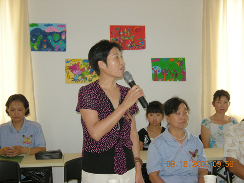 她被要求谈体会。刘师兄说,来到这个大家庭中每一天都生活在感动和快乐之中,这样,引起我老公的好奇,他后来来了几次,感受到这个大家庭的和睦和温暖,就默默地支持我,谢谢你老公!我感到在这个大家庭中,在师父师兄们的帮助下,我在慢慢地成长,过去我是一个急躁、由着性子来的人,现在已经有了很大的转变。感恩大家的帮助、无微不至的关怀,感恩这个大家庭!