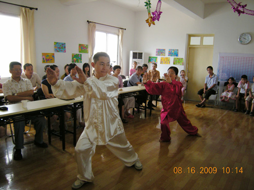 老志愿者余青松、孙伟为寿星们表演了太极拳助兴。