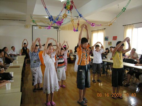 紧接着,孩子们为大家表演了手语舞《感恩的心》。