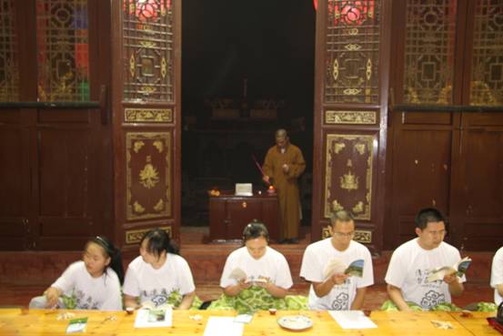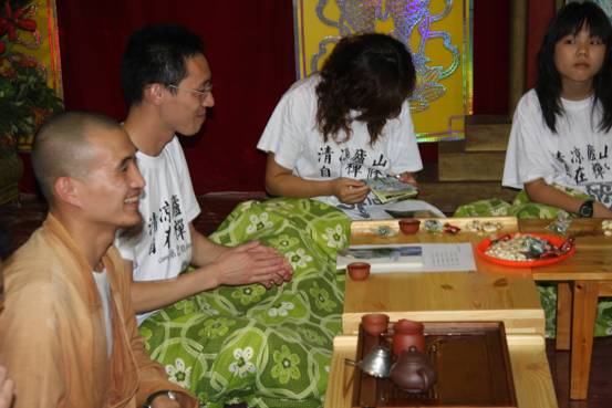 晚7点,诺那塔院住持妙行法师主持欢迎茶会,来自五湖四海的营员在此相逢相识,缔结善缘。会上,法师为大家介绍茶道之深意,禅茶之味重在“敬心、静心、净心”。并为大家介绍本次禅修活动的授课导师:东方佛教网创始人——义杰法师,东方佛教网指导法师——义净法师,厦门铜钵岩寺当家师——德平法师,诺那塔院副寺——定恒法师,诺那塔院当家师——强辉法师。最后,大家齐颂《洗心钟》,朗朗梵呗声中,欢迎茶会圆满结束。