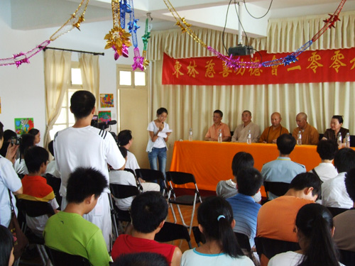 与往年只举办单一的捐助仪式做法不同,在会长镜义法师的指示下,从今年开始,功德会增添了由志愿者和受助学生进行思想交流的内容。我们不仅要对这些孩子进行物质的帮助,精神上也应满怀爱心付诸关怀。