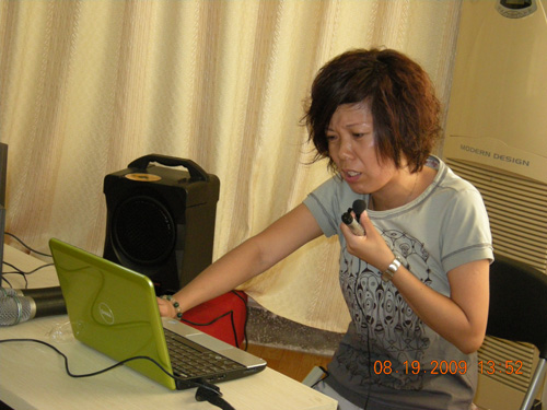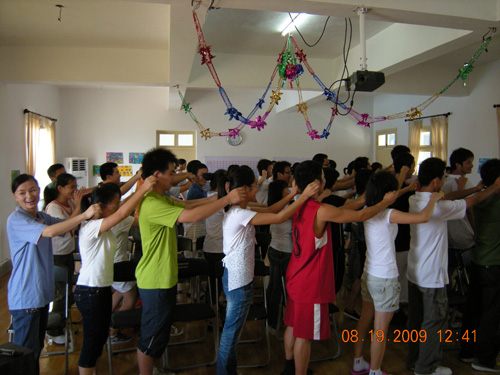 董杰师兄以她长期探索的培训经验,令同学们在游戏中获得了启迪。交谈中间,她让大家全体起立,向右转,让大家根据她的指令给前面的同学按摩头部、敲打背部、腰部;然后向后转,换过来如此按摩敲打一番。同学们被按摩敲打得浑身舒适。董杰师兄的启迪抛了出来:“这就是我为人人,人人为我;不是人人为了我之后,我再想去为别人呦!爽不爽?”同学们报以首肯的一阵欢笑。
