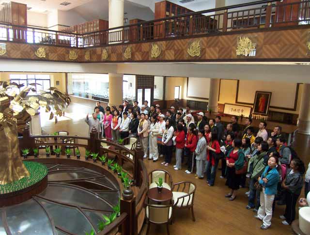 企业家们中午的时候集体参加了寺院过斋,按寺院的过斋要求,在整个过程中大家不可以说话,不能剩饭,为了不剩一粒米,不浪费一滴油,表明自己对惜福的认识,最后还必须喝光碗里的水,碗里没有一丝剩余的时候,才结束用餐,这次过斋对企业家们来说是一个非常难得的体验。