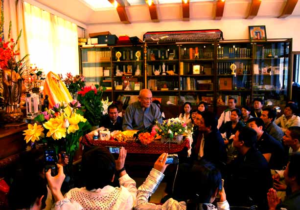 中华慈善在线五台山讯 2009年8月15日,北京智慧谷企业家学习俱乐部一行近百名企业家,来到著名佛教圣地五台山普寿寺参访学习。企业家们在短短的一天时间里,聆听了如瑞法师的简短开示,拜见了著名高僧梦参老和尚,梦老和企业家们进行了轻松而深刻的短暂交流,随后大家体验了寺院的午斋,并参拜了舍利子。