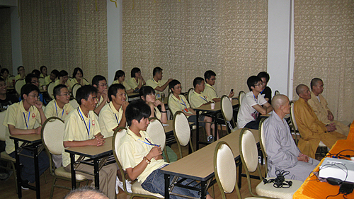 晚7点,来自全国各地的,60多名参加第三届佛学夏令营的营员聚集在讲堂。举行了见面会