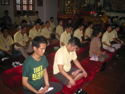 绍云禅师是虚云老和尚的关门弟子,他介绍了四种比较实用的坐禅方法,分别为禅定法、止观法、念佛法、呼吸法。禅修后有欢喜心感觉非常舒服,绍云禅师慈眉善目很慈悲,一位来自淮南的营员说“在念佛堂禅修时营员们依照绍云禅师的教导,虔诚的修禅,整个念佛堂十分宁静,只能听到角落里的空调转动的声音。