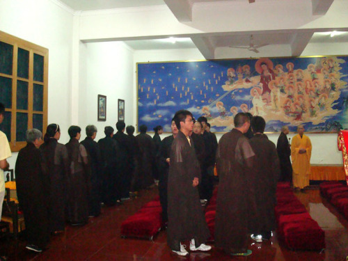 七月二十四日下午两时褒禅寺的绍云禅师给营员们讲述了禅宗知识和修禅法门,并带领大家去念佛堂禅修一小时。