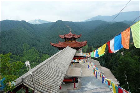 郁郁葱葱的树木将山巅笼罩,在墨绿色的松林背景中,那翠绿色的白杨林带,像将军的佩带似的,从山顶斜向山腰。山林在阳光照耀下涂金抹彩,层次分明,那秀美的景色,令人惊叹。山脚下一条清澈见底的溪水欢快地流过,越发衬托出周围环境的寂静幽美。溪水的西面也是一座绿荫覆盖的山,山势挺拔险峻,那闻名遐迩的夏宗寺便建筑在这峭崖陡壁之下。这里是个林木茂盛、重峦叠峰、山花烂漫、景色迷人的地方。