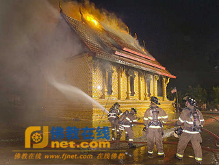 据《AP》报道,2009年8月24日晚,美国德克萨斯州沃斯堡的Lao Thepnimith寺发生火灾,燃烧的火焰摧毁了这个精致的手工寺院,无人伤亡,事故原因还在进一步调查中。