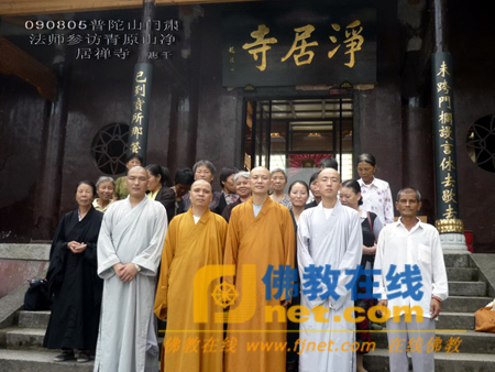 2009年8月5日,普陀山佛教学院副院长兼教务长门肃法师参访江西青原山净居禅寺,并为四众弟子作了题为“佛法与人生”的讲座。江西省佛教协会副会长、净居禅寺方丈妙安法师主持了讲座。