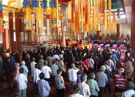 2009年8月2日早上9点,重庆罗汉寺大悲忏法会在大雄宝殿隆重举行,千余居士在法师的带领下,诵念经文,共沾法喜。大悲忏法会将持续到8月8日(农历六月十八日)结束。