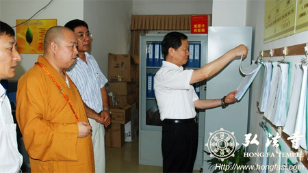 2009年8月2日上午,国务院国有资产监督管理委员会主任李荣融一行,在深圳东部华侨城领导陪同下来到深圳弘法寺,拜望中国佛教协会咨议委员会主席本焕长老,并对弘法寺各项工作进行了调研。李荣融主任一行先后参观了解了弘法寺的寺院管理、义工团组织、弘法书店等,对弘法寺的弘法工作给予肯定并提出宝贵意见。