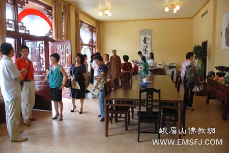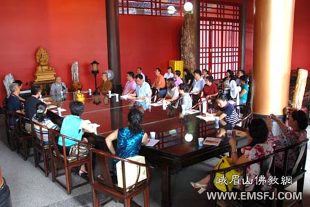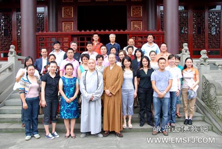 2009年8月27日上午,北京大学佛学班30余位学员在清华大学哲学系博士后、南京大学哲学系讲师圣凯法师的带领下,前往峨眉山大佛禅院参访,峨眉山佛教协会会长永寿法师等热情接待了北京大学佛学班一行,并在藏经楼法堂座谈交流。