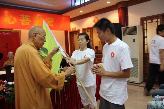 开幕式由祥符禅寺监院传兴法师主持,无相大和尚在开示的时候旁征博引,他激励营员“通过共修,种下成佛之因,在若干岁月之后,一定会成就佛果”;营员代表接过了无老手中的营旗,举行了入营宣誓,菩提营正式开营。