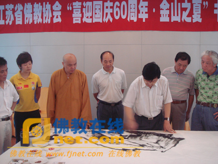 江苏佛协迎国庆60周年书画交流笔会在江天禅寺举行