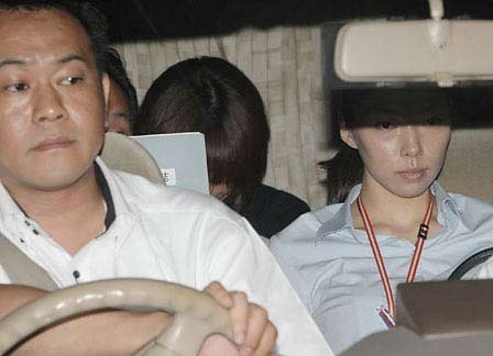 酒井法子乘坐在将她从富坂警察署向涩谷警察署移送的警车后排座位上。她上身着一件极其朴素的衬衫,完全没有了昔日的星之光芒。