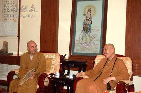 2009年8月13日下午,江苏戒幢佛学研究所所长济群法师到江西省九江东林寺参访,受到东林寺代住持大安法师的热情接待。