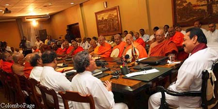 马欣达·拉贾帕克萨对法师们巨大艰辛的工作表示感激,并从总统基金中拨出100万卢比给法师们用作以后发展佛教文化的资金。(编译:子规)