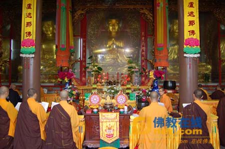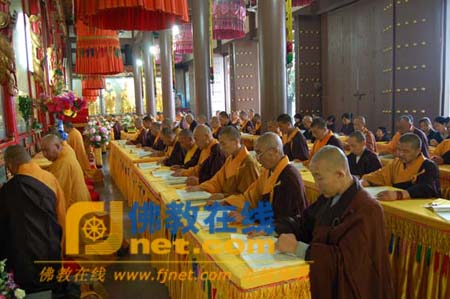 上午8:10开始举行消灾祈福超度法会,由法门寺监院智超法师主法并拈香,常住僧众与佛学院师生共同颂念《梁皇宝忏》。