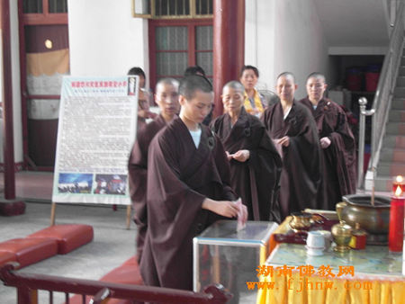 2009年8月23日,在湖南省佛协的统一部署下,湖南省永州市佛教界僧众闻灾而动、寻声救苦,在第一时间为台湾遭受风灾的同胞组织捐款并举办祈福法会。