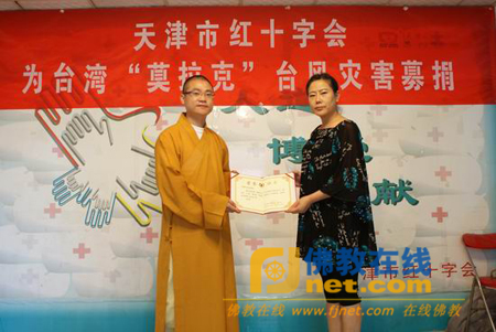 天津大悲禅院为台湾祈福并捐助赈灾善款六万元