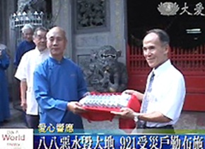 八八水灾重创台湾后,位于台湾埔里的道教场所醒灵寺把一百二十万元捐款交给慈济,希望通过慈济人的手,让善款发挥最大功效。