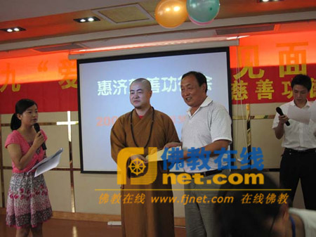 2009年8月22日,江苏省南京市惠济慈善功德会2009年秋季“爱心圆梦”活动在汤泉宾馆隆重举行。出席会议的有汤泉街道宣传委员熊传,汤泉街道民政办李居详科长,惠济慈善功德会会长朗明法师、秘书长悟定法师,及六十多名热心会员和功德会资助的30位中小学生及其家长们。