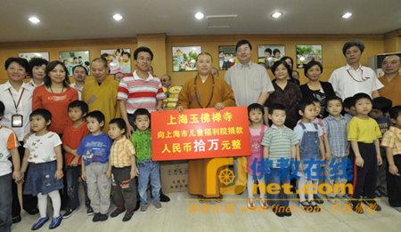 2009年9月23日上午,在建国六十周年庆及中秋佳节即将到来之际,上海玉佛寺方丈觉醒法师携寺院部分常住及觉群慈爱功德会理事长、副理事长,到上海市儿童福利院进行慰问,为那里的孤残儿童送去500盒月饼及10万元慰问金。