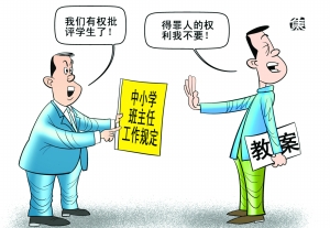 然而,对于相当一部分年轻班主任来说,“适当批评”的尺度还是不容易掌握的。为此,他们希望主管部门能够对班主任的批评权做出详细解释,进一步明确职责,从而令班主任们敢于大胆管理学生、教育学生,同时也能避免滥用权力、随意批评学生。