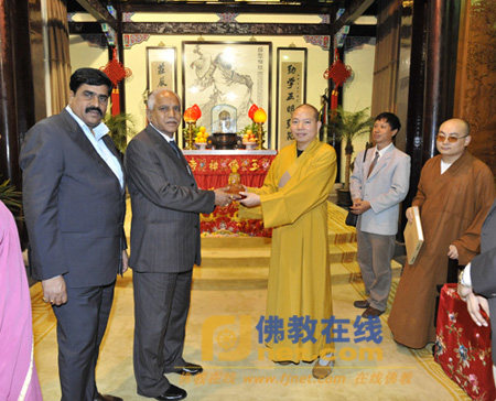 2009年9月7日,印度卡那塔克邦首席部长Mr B.S.Yeddyurappa率领邦政府部门官员一行14人来到上海玉佛寺参访。玉佛寺寺务处主任长春法师代表中国佛教协会副会长、上海佛教协会会长、玉佛寺方丈觉醒法师热情接待了来访客人。