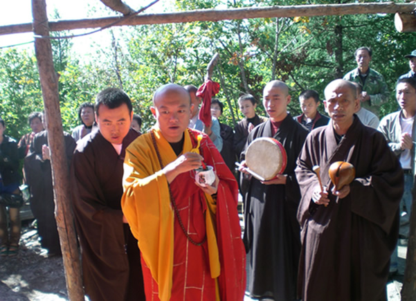 随后又举行了三大护法殿(当山护法殿 山神土地殿 城隍殿)上梁大法会,由全国青联委员、省佛教协会副会长中庸法师主法。