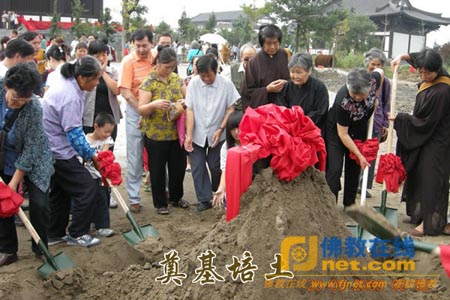 首先,嘉兴市政府副市长张志伟、市民宗局副局长何伟明两位领导先后发表讲话庆。随后,护法居士代表陈正财发表讲话。接着,精严讲寺住持峙宇法师致词,向光临法会的各位领导、各位法师、各位来宾和十方信士,表示欢迎和感谢!他表示,木纹观音殿举行奠基典礼,象征着精严讲寺二期建设工程正式启动,标志着精严讲寺的进入了一个新的建设发展阶段。重建精严讲寺,重建木纹观音殿的目的就是要重兴精严讲寺,树立佛教正气,弘扬佛教正法,造福于社会,利益于人民,为祖国六十华诞献礼,为构建和谐社会做出积极的贡献。