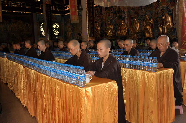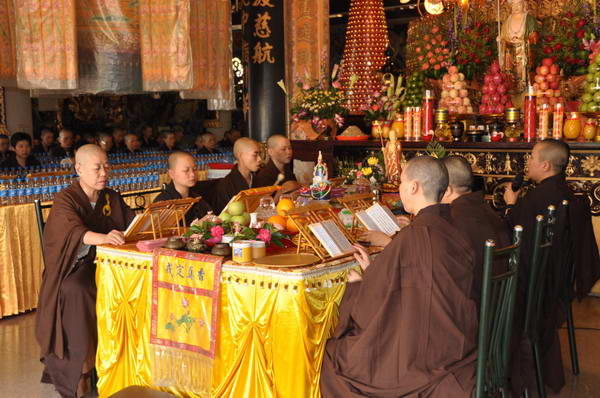 僧众在大殿内诵读地藏经